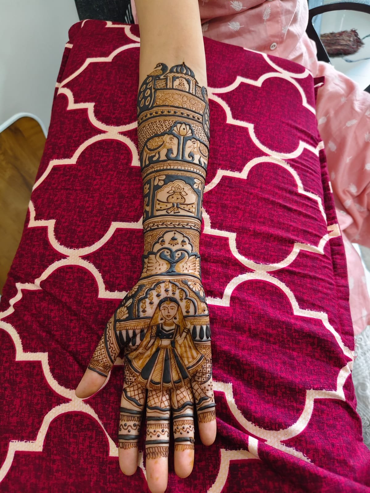 “My bridal Mehandi was a dream come true! Every detail—from the peacock motifs to the bride-groom portraits—was crafted so beautifully. The color was rich and dark, just as I wanted.”